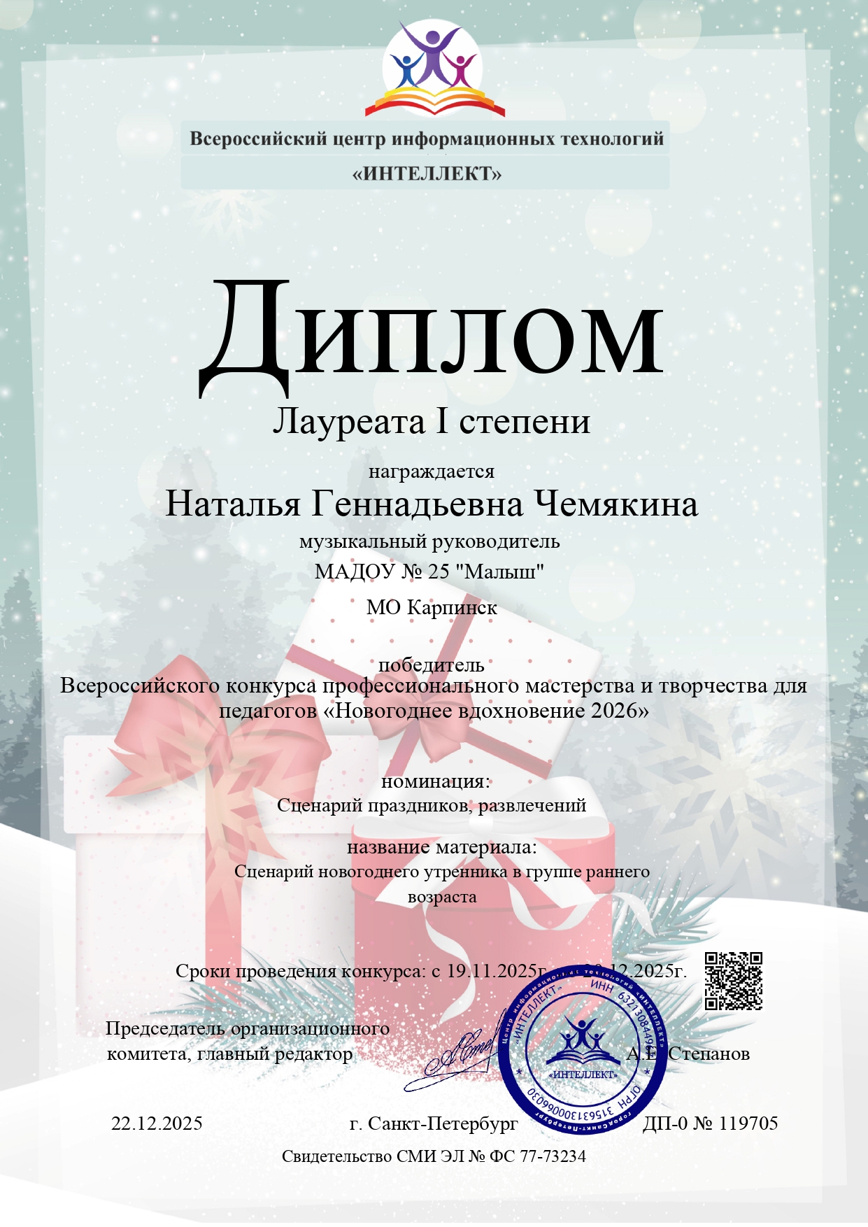 Всероссийский конкурс профессионального мастерства для педагогов "Новогоднее вдохновение 2026"